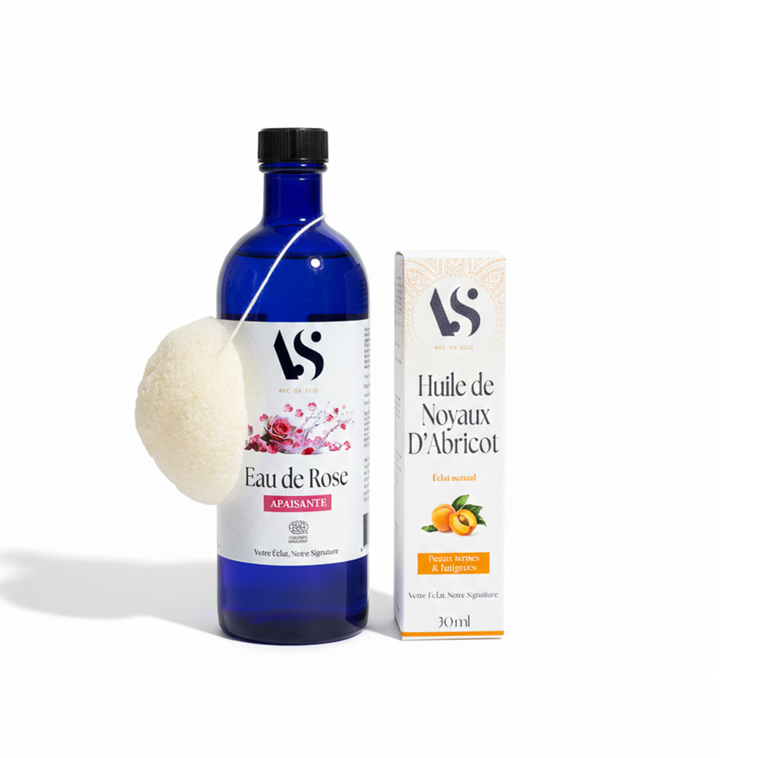 Eau de Rose – Éponge Konjac – Huile de Noyaux d’Abricot